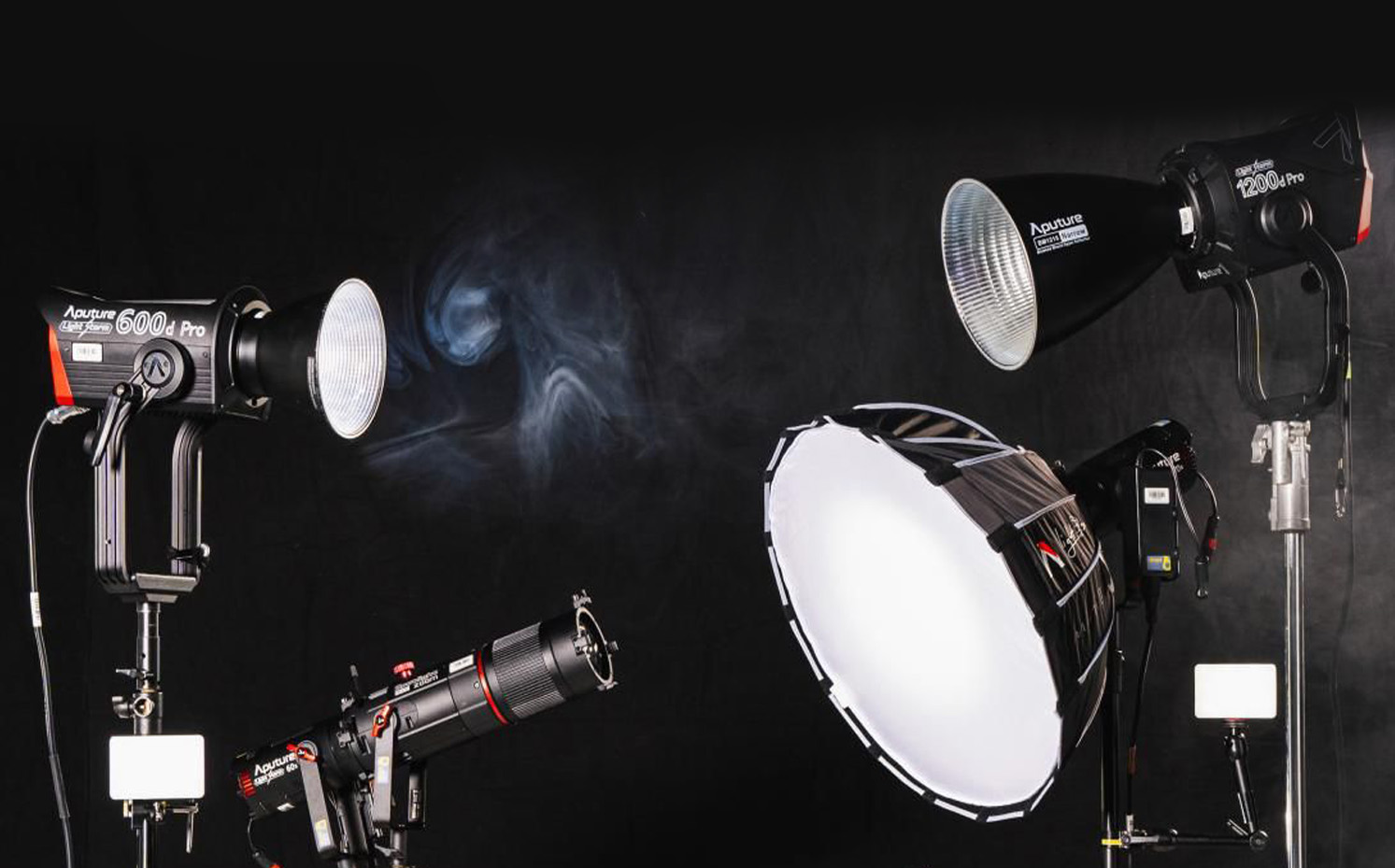 Open Face 15°,30°,60°, + 2x Barndoor, Ctrl Panel + Cable, Nogaarm, Antenna, Case + Bag for Reflector, orbiter docking ring